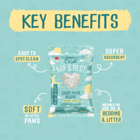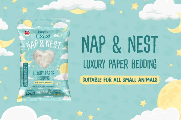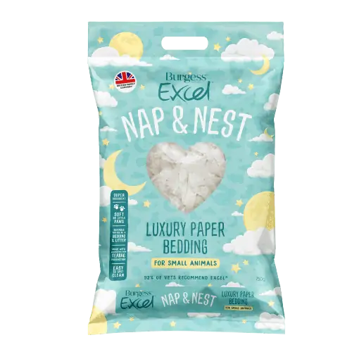 Brand new Burgess Excel Nap & Nest is luxury paper bedding for your small animals. Suitable as hamster bedding, rabbit bedding, chinchilla bedding and more! Made from unused offcuts from the teabag production industry, Nap & Nest is suitable to use as bedding and as litter.
